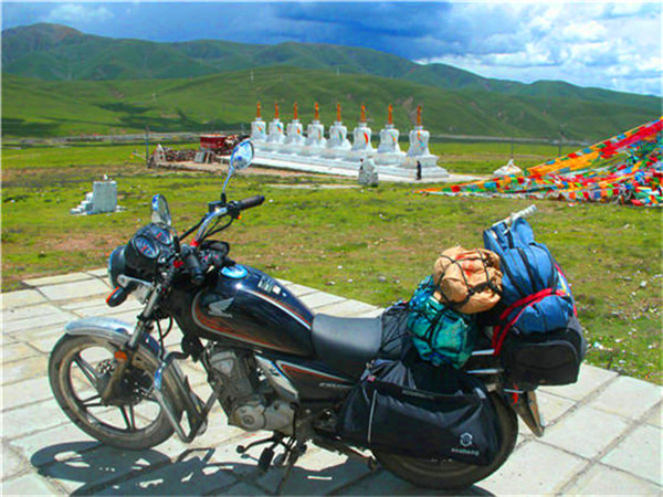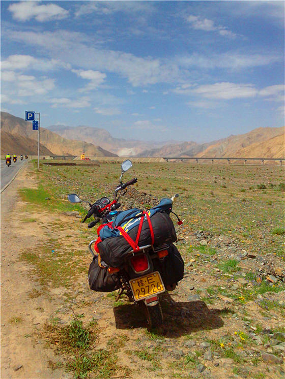于是,我下定决心,骑行摩托出了拉萨,转入109国道,这国道真好、真笔直,道路修建在辽阔的草原、逶延山岳地带,这就是传说中“天路”。那曲的草原很漂亮,广茅而辽阔,那草长得青绿绿,山与山之间错而有致,起伏壮观,骑行时闲致而宁静。